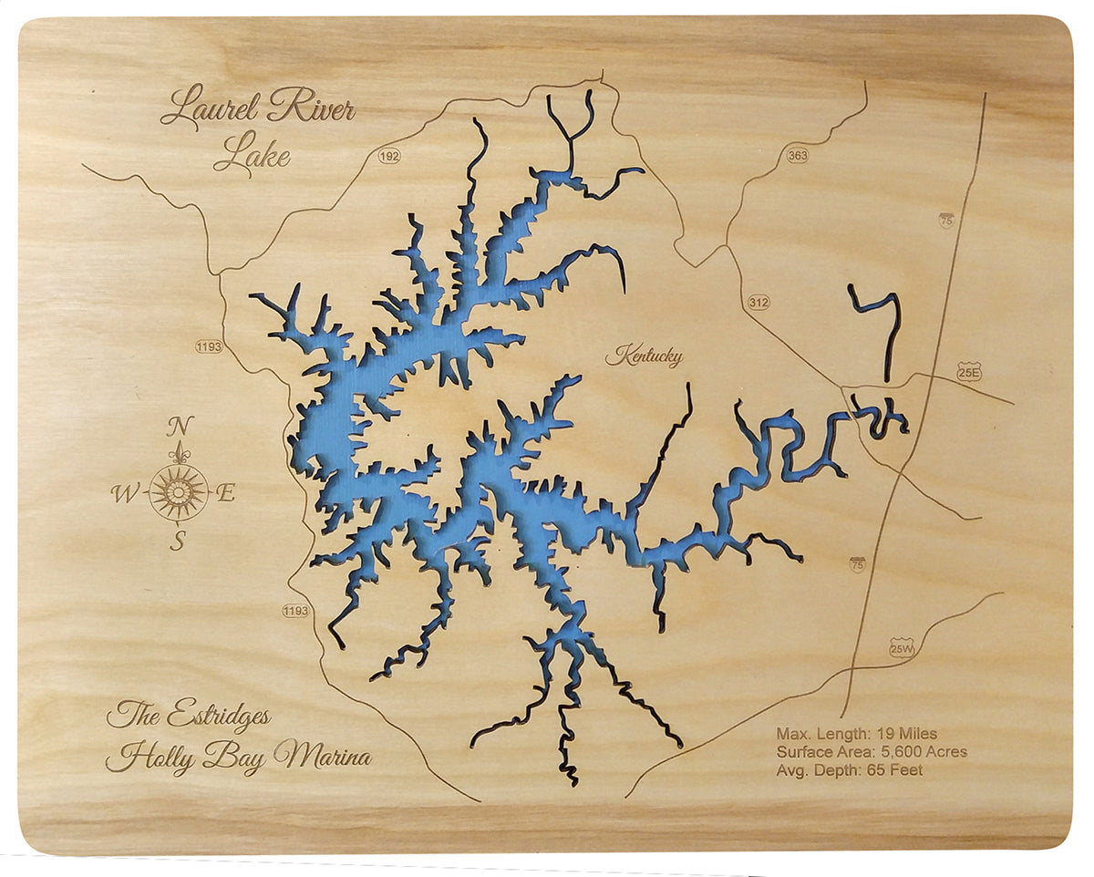 Laurel River Lake, Kentucky Laser Cut Wood Map| Personal