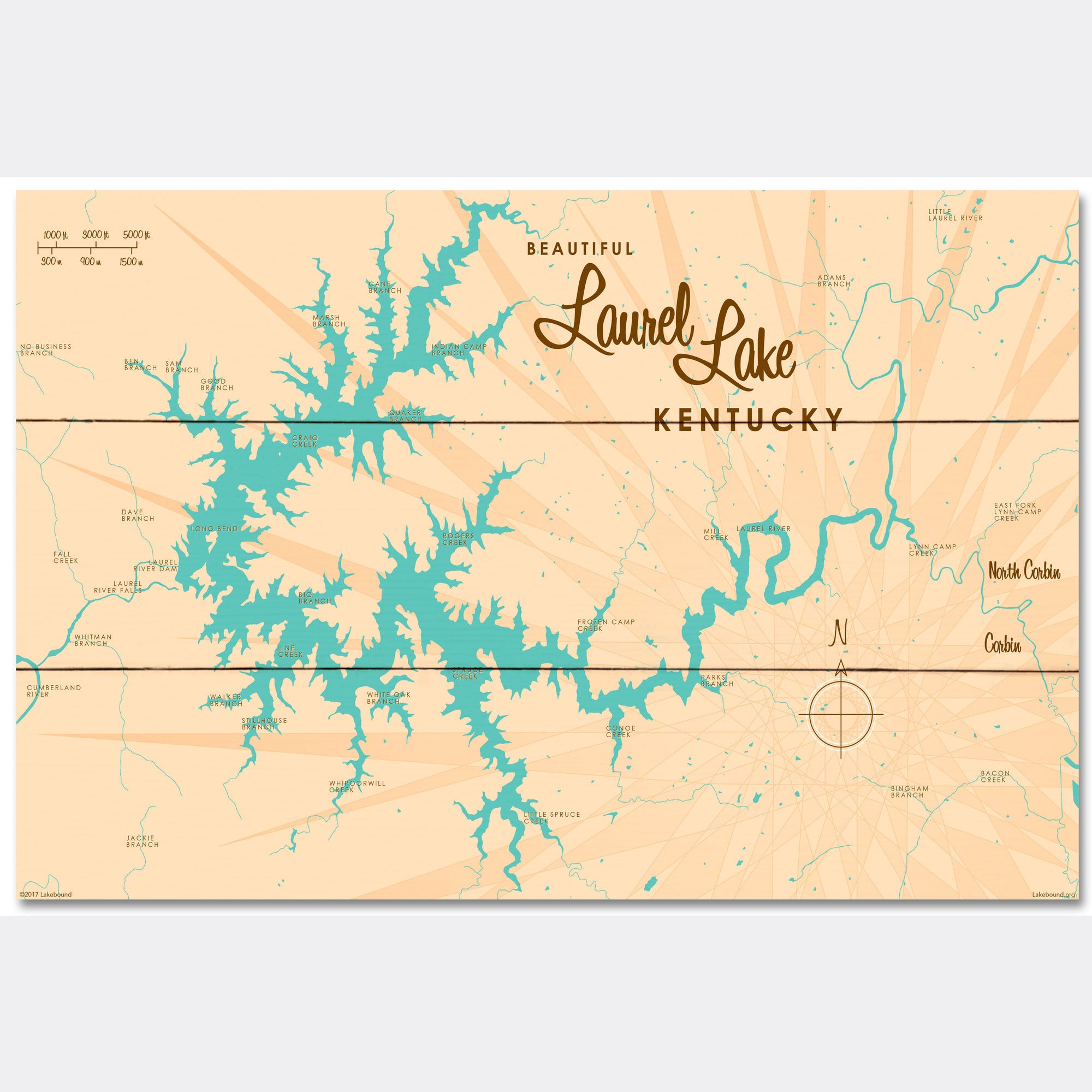 Laurel Lake, Kentucky, Wood Sign Map Art – Lakebound®