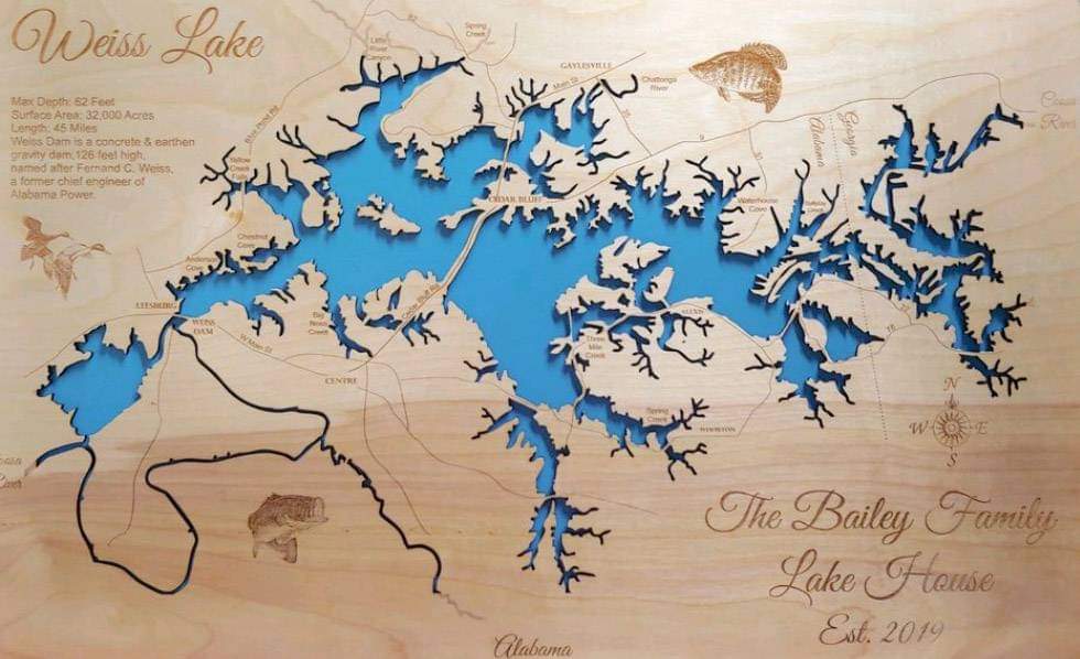Weiss Lake, Alabama and Georgia laser cut wood map| Personal