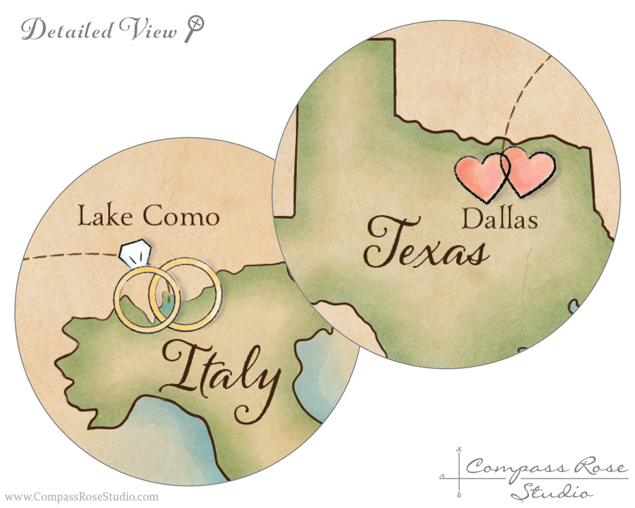 Lake Como Italy Vintage Watercolor Wedding Map, any location